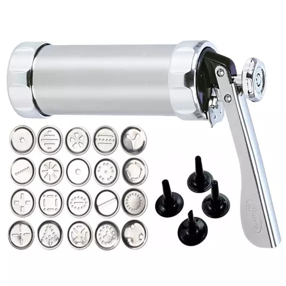 High Quality : A high-quality stainless steel ice gun with adjustable trigger nozzle for complete control and ease of use. Beautiful and not easy to break: very sturdy high-quality stainless steel cutting machine. The sugar biscuit gun is ergonomically designed to provide you with a strong and comfortable grip, allowing you to use it easily. The cookie squeezer has a unique trigger design, so all you have to do is squeeze it to get beautiful homemade cookies.