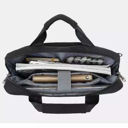 The design is practical yet stylish, featuring multiple zippered compartments for easy organization of chargers, notebooks, pens, phones, and more. It includes a sturdy top handle for carrying like a briefcase and an adjustable, detachable shoulder strap for hands-free use. This versatility allows users to switch between professional and casual settings with ease.