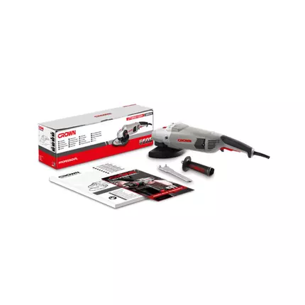 The angle grinder is designed for cutting and grinding metal products. Rubberized grip areas reduce the load on the operator's hand. An additional handle provides good control over the tool. The gearbox can be rotated 360 degrees, allowing you to select the desired position for various types of activities. A ball bearing is pressed onto the driven gear shaft, and the helical connection of the angular gearbox reduces vibration and noise of the tool. The engine, due to large ventilation holes, allows you to work with the tool for a long time without overheating the windings. Features: Decked with a contoured handle that sits perfectly in the hand making it easy to operate Innovatively designed that allows locking of spindle to prevent accidents Efficiently exhibits high power with low power consumption Product configuration: Angle grinder 1 pc User Manual 1 pc Protective cover 1 pc Key 1 pc Level 1 pc Warranty card 1 pc Box 1 pc Specifications: Brand: Crown Model: CT13500-230N Type: Angle Grinder Power: 2200 W Current at 230V: 10.0 A Idle speed: 6500 rpm Spindle thread: M 14 Maximum cutting disc diameter: 230 mm Weight: 5.4 kg Length: 56.5 cm Width: 36 cm Height: 15 cm Packed by color box