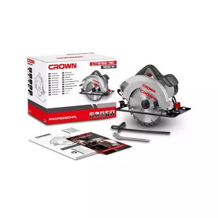 The circular saw is designed for cutting wood at a right angle or at an angle of up to 45 degrees. Crown circular saws are distinguished by good balance, which reduces the load on the operator's hand and increases productivity. Rubber pads in the grip areas provide reliable control of the tool. Straight and smooth dust removal does not get clogged with sawdust, allowing you not to stop work to clean the tool. Product configuration: Circular saw 1 pc User Manual 1 pc Key 1 pc Parallel stop 1 pc Box 1 pc Specifications: Brand: Crown Model: CT15199-185 Type: Circular Saw Power: 1200 W Current at 230V: 5.6 A Idle speed: 5500 rpm MAX/MIN saw blade diameter: 190/185 mm Mounting hole diameter: 20 mm Maximum saw blade thickness: 2.0 mm Maximum cutting depth at 90°: 66 mm Maximum cutting depth at 45°: 46 mm Weight: 4.1 kg Length: 52 cm Width: 34 cm Height: 29 cm Packed by color box