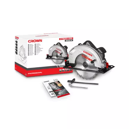The circular saw is designed for cutting wood at a right angle or at an angle of up to 45 degrees. Crown circular saws are distinguished by good balance, which reduces the load on the operator's hand and increases productivity. Rubber pads in the grip areas provide reliable control of the tool. Straight and smooth dust removal does not get clogged with sawdust, allowing you not to stop work to clean the tool. Features: It allows easy changing of the circular saw blade by locking the spindle. It allows half-cutting to obtain cleaner and sharper edges in the second cut by adjusting the cutting depth. It allows materials to be cut at an angle. Product configuration: Circular saw 1 pc User Manual 1 pc Key 1 pc Parallel stop 1 pc Box 1 pc Specifications: Brand: Crown Model: CT15210-235 Type: Circular Saw Power: 2000 W Current at 230V: 10.0 A Idle speed: 4500 rpm MAX/MIN saw blade diameter: 235/230 mm Mounting hole diameter: 30 mm Maximum saw blade thickness: 2.4 mm Maximum cutting depth at 90°: 85 mm Maximum cutting depth at 45°: 60 mm Weight: 7.6 kg Length: 62.5 cm Width: 44.5 cm Height: 34.5 cm Packed by color box