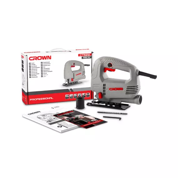 Jigsaw is a tool for the presence of figured cutting of parts. Fixation of the start button to simplify work during a long time. Availability of 4 pendulum stroke modes for comfortable work with different materials. Keyless replacement of saw blades (SDS System) simplifies the change of equipment. Blowing of the saw line and the ability to connect a vacuum cleaner. Features: Selects the most appropriate stroke rate for specific materials. It allows adjusting the saw tip in 4 stages. It allows materials to be cut at an angle. Product configuration: Jigsaw 1 pc User Manual 1 pc Adapter for connecting a vacuum cleaner 1 pc File 1 pc Allen key 1 pc Box 1 pc Specifications: Brand: Crown Model: CT15212 Type: Jigsaw Power: 550 W Current at 230V: 2.4 A Idle speed: 700-3000 rpm Rod stroke: 18 mm Cutting depth in steel: 3 mm Cutting depth in aluminum: 10 mm Cutting depth in wood: 65 mm Tilt angle (left / right): 45°/45° Weight: 1.9 kg Length: 53.5 cm Width: 31.5 cm Height: 23 cm Packed by color box