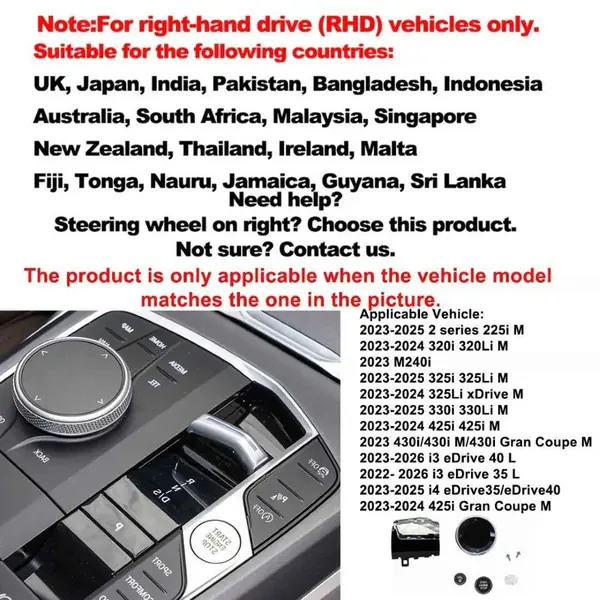COMPATIBLE WITH BMW 2 SERIES F44 3 SERIES LCI G20 G28 I3 7 SERIES G12 G70 4 SERIES G26 X3 X4 X5 X6 X6 G01 G08 G02 G05 G06 G07 Z4 G29 CRYSTAL GEAR SHIFT KNOB PADDLE HANDLE CIC SCROLLER START STOP VOLUME KNOB BUTTON