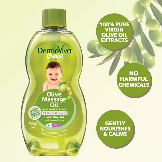 Your baby's skin is extremely delicate and loses moisture easily. This is why, DermoViva Baby Olive Massage Oil, contains plenty of Virgin Olive Oil and nature's finest herbs, to keep your baby's skin soft and healthy, exactly the way it should be!