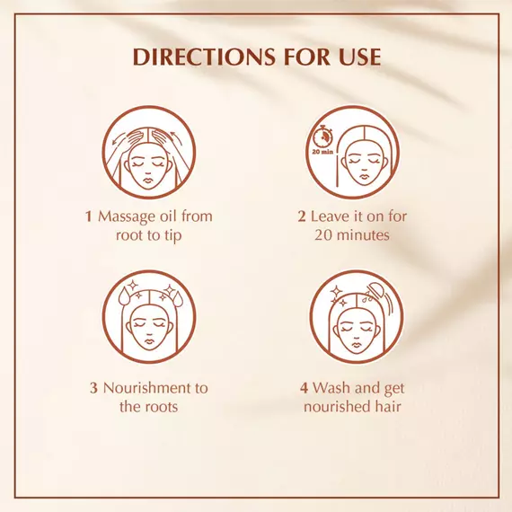 Nourishing your locks with real goodness couldn't be easier. Using hair oil is an important part of caring for your hair, as it provides essential nutrients, locks in moisture, prevents hair damage, promotes shine, and helps to protect against environmental factors. For beautiful, nourished hair, apply this massage oil from your roots to the tips of your hair, and then leave the oil on for 20 minutes to allow the nourishment to penetrate deeply. Afterward, rinse your hair thoroughly. Enjoy the beautiful, healthy shine of your nourished hair. Give your hair the care it deserves—moisturize for beautiful hair!