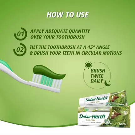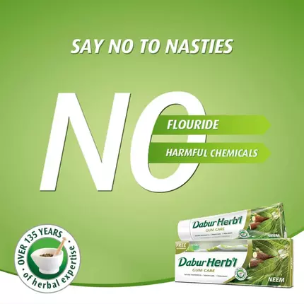 The Dabur herbal neem toothpaste soothe gums, fight bacteria and provide fresh breath. Experience the benefits of the neem toothpaste, free from fluoride and harmful chemicals for complete care of your gums and teeth.