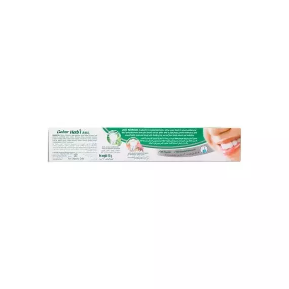 Dabur Herb’l Basil toothpaste helps maintain fresh breath and prevent plaque formation. The basil toothpaste help fight germs, keep gums healthy and teeth strong.