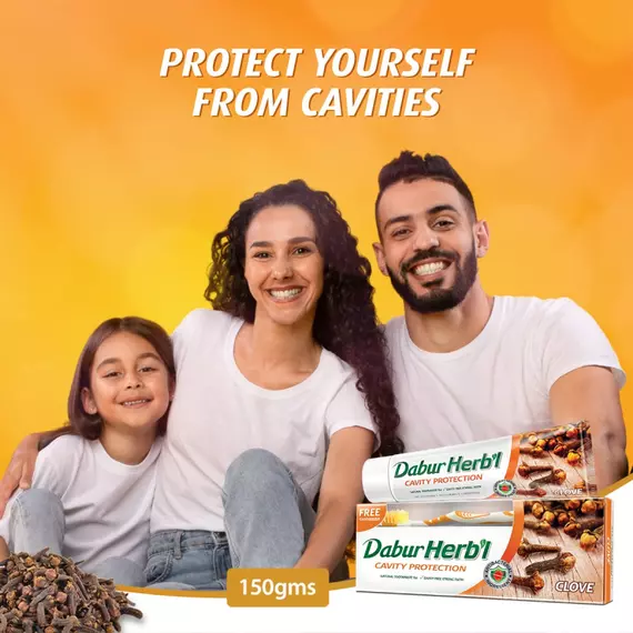 Dabur's Herb'l Clove Toothpaste is the unique blend of clove and natural calcium for complete cavity protection. The toothpaste for strong teeth is completely devoid of fluoride and other harmful chemicals. The cavity protection toothpaste is a unique blend of trusted clove with natural calcium. The toothpaste reduces toothaches, soothes gums and prevents cavities.