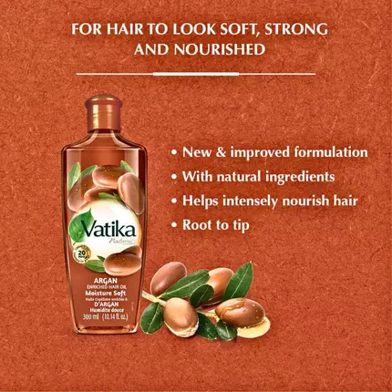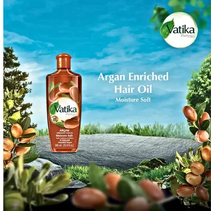 - Argan Oil Enrichment: Dabur Vatika Naturals Argan Enriched Hair Oil contains the richness of argan oil, sourced from the Moroccan argan tree. Packed with essential nutrients and antioxidants, this oil deeply nourishes your hair, promoting strength and vitality.