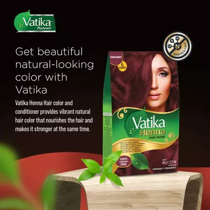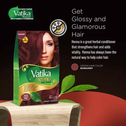 Now you can exchange grey for glossy and glamorous colour. Vatika Henna Hair Color is a natural-based solution for coloring your hair. And as a great herbal conditioner, henna will strengthen hair and add vitality too. So no worries about damaging your hair as you gently coax the color back. Throughout India, the Middle-east and Europe, henna has always been the natural way to help color hair. It’s only natural that it will help you look sensational too. We have a range of henna for hair colors that you can choose from: Burgundy, Dark Brown, Natural Brown, and Rich Black. These rich and natural colors stay for weeks, even months and completely cover grey hair to make it look healthy and vibrant. Our henna hair color doesn't contain ammonia which can cause burning, itching and redness.