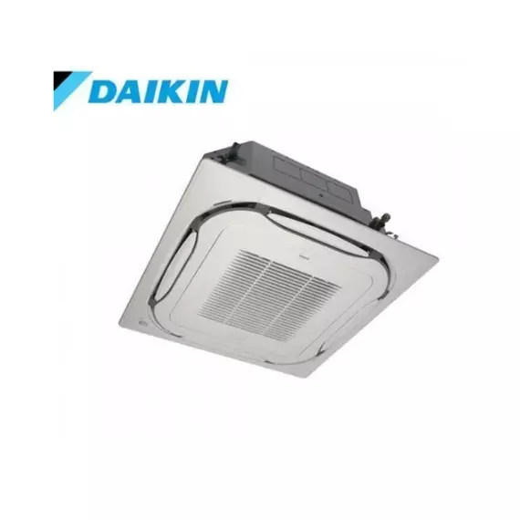 Cassette air conditioner with 360° uniform airflow sets the standard. It’s all around air flow uplifts the comfort level with uniform cooling and features like Silver ION Antibacterial Drain Fan ensures clean & fresh air. Key Features: D III net compatible Connection to a centralised control system is available without need for an optional adaptor. Available in Inverter Series only. Drain pump mechanism Steeper gradient realises more efficient condensate drainage. High-lift is especially useful for long lengths of drain piping. Energy consumption monitoring Past power consumption is displayed for the current and previous days as well as in weekly and yearly intervals. Individual air flow control Airflow direction can be individually adjusted for each air discharge outlet to deliver optimal air distribution. Night quiet operation The Automatic night quiet mode will initiate 8 hours after the peak temperature is reached in the daytime, and normal operation will resume 10 hours after that. Silver ION antibacterial drain pan A built-in anti-bacterial treatment that uses silver ion in the drain pan prevents the growth of bacteria, and mould that cause odours & clogging. Swing pattern selection You can freely set air discharge settings by remote controller. One can choose from Standard setting, Draft prevention setting and Ceiling soiling prevention setting. Auto restart If there is a power outage while the equipment is operating, operations will restart in the same mode as before the power cut when electricity is restored. Features: Individual Air Flow Control Fresh air intake kit Silver Ion Antibacterial Drain Pan Night Quiet Operation Swing Pattern Selection Drain Pump Mechanism Low gas pressure detection 360° Airflow Specifications: Brand: Daikin Model: FCVFQ50AV16/RZVFQ50AV16 Type: Air Conditioner AC Type: Ceiling Cassette Capacity: 18000Btu Compressor: Inverter Rated Cooling Capacity: kW