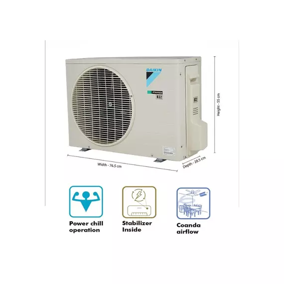 3.99 Annual Power Consumption kWh: 1022.39 BEE Star Rating Star: 3-Star Operating Range: IDU (DB)°C 19~35 ODU (DB)°C 19~50 Power Supply V/Hz/ph: 230V/50Hz/1ph Indoor Casing Size HxWxD (mm): 256x840x840 Casing Color: Galvanized Steel Coated Indoor Unit Weight kg: 22 Panel Size HxWxD (mm): 50x950x950 Panel Weight kg: 5.5 Outdoor Casing Size HxWxD (mm): 595x845x300 Outdoor Weight(Approx) kg: 32 Compressor Type/Qty-Nos.: Swing Compressor/1 Refrigerant: R-32 Color: White