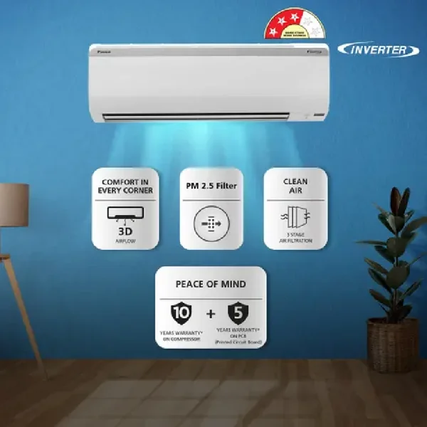 - Highest ISEER 6.2: Offers 38% more energy efficiency compared to a standard 5-star AC (ISEER 4.5).