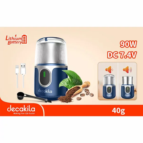 The Decakila Coffee Grinder is a cordless, rechargeable grinder featuring a 90W motor and a 2000mAh lithium battery. Its safety protection design and fine grinding capability make it ideal for grinding coffee beans and other dry ingredients quickly and efficiently.