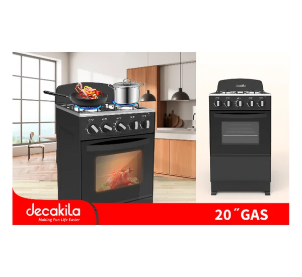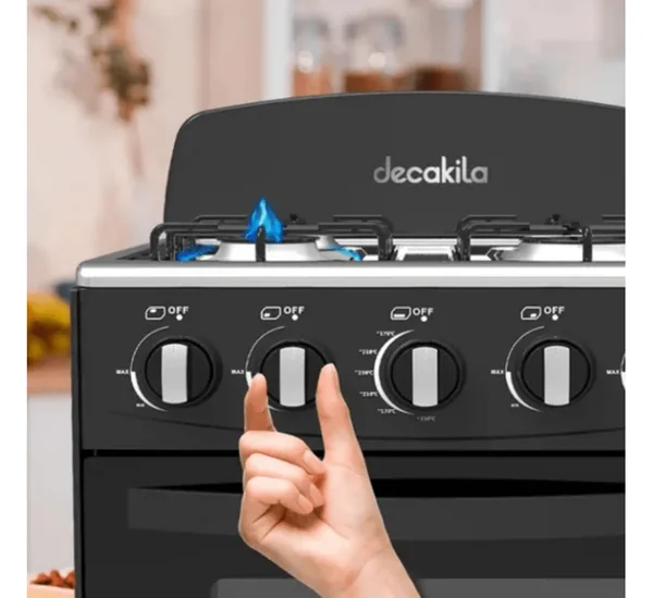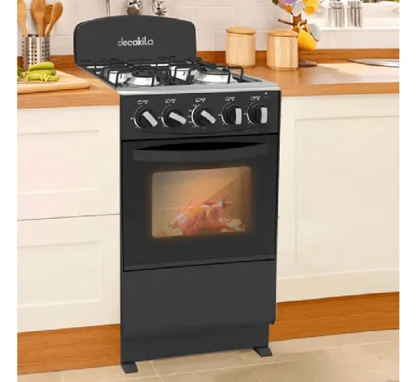 The Decakila Cooker 50x50 is a full gas cooking range featuring a 50-liter oven and a versatile four-burner hob. Designed for durability and efficient performance, it combines a sleek black finish with practical features for everyday cooking.