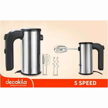 The latest products in your kitchen from Decakila, Very comfortable hand beater. Specifications: Wattage:200W Voltage:220-240V 50/60Hz 5-speed with eject With speed control With individual eject button With 2pcs beaters and dough hooks beater