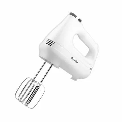 Decakila Hand Mixer 200W 6 Speed With Turbo White Steel Beaters & Hook With Speed Control Knead or Beat & Mix KEMX001W
