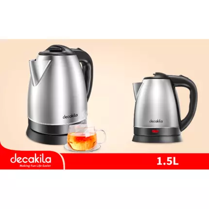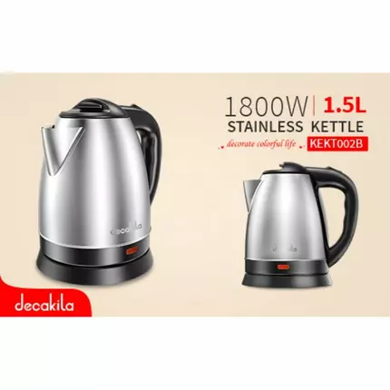 Specifications: Stainless kettle with base Capacity:1.5L Wattage:1800W Voltage:220-240V 50-60Hz With water gauge Boil dry protection With working light Body with filter design Cord-storage and anti-slip feet design Automatic power off after boiling Open lid by hand Packed by color box