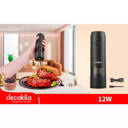 Decakila Pepper Grinder 12W Electric Stainless Steel Body Carbon Steel Shaft Grinding Coarseness Adjustment Built-in LED Lamp KMTT023B
