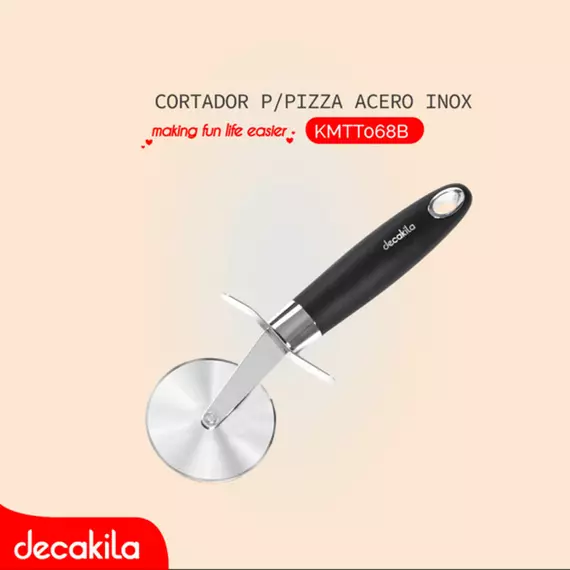 Introducing the Decakila Pizza Cutter (KMTT068B), the ultimate kitchen companion for effortless slicing. Crafted from premium 430 stainless steel and PP, this cutter boasts exceptional durability, ensuring it withstands the test of time. Its sturdy construction effortlessly slices through pizzas, waffles, pies, and even cookie dough with precision and ease, and its non-slip handle offers a comfortable grip for seamless maneuverability.