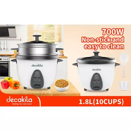 Decakila Rice Cooker 1.8L 700W 10 Cups Non Stick Easy to Clean With 1 Spoon With 1 Measuring Cup Split Power Cord KEER034W