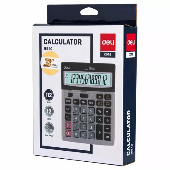 Deli Desktop Calculator 12 Digits Silver E1654C