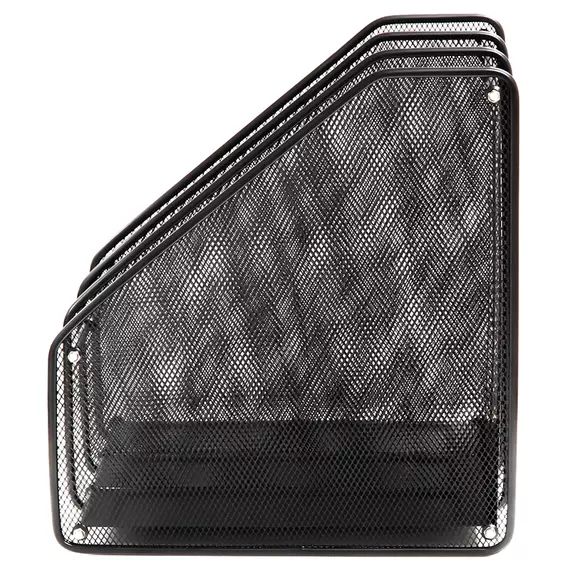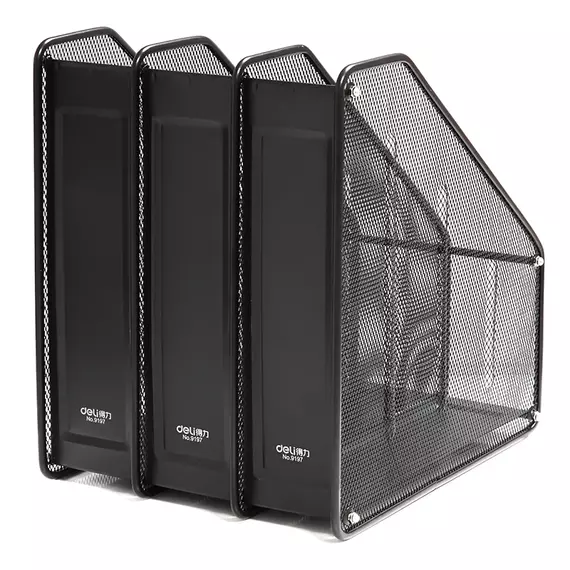 Deli E9197 Mesh Metal Magazine Holder has 3 Compartments and is made of Mesh steel Material. Available in Black Colour. The 3-Compartment Mesh Magazine Holder helps you use your work area effectively by keeping your magazines, newspapers, journals and files organised and close at hand for easy access