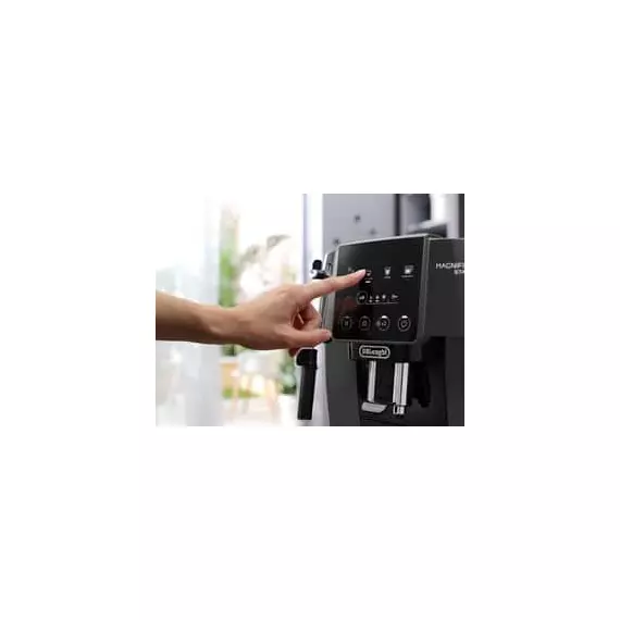 Enter the world of bean-to-cup coffee with De'Longhi Magnifica Start, providing everything you need to get started with your favourite espresso-based drinks at home. It features a user-friendly interface and grey & black finish, with a customised selection of beverages delivered with just one touch. SUMMARY Enjoy your favourite coffee beverages from freshly ground beans Manually prepare a creamy milk foam with the traditional milk frother Choose from 4 one-touch recipes: steam, espresso, coffee and americano Personalise the aroma and temperature of your drinks Removable, dishwasher-safe components for easy care Technical Details Brand De'Longhi Model Number 132220079 Color Grey/Black Product Dimensions 50 x 50 x 28 cm; 8.8 kg Capacity 10 Liters Power / Wattage 100 KW Voltage 100 Material Foam Noise Level 10 dB Special Features Milk Frother Item Weight 8.8 Kilograms The freshest coffee Enjoy high-quality coffee in every cup as the machine grinds the beans fresh, right before brewing. Includes a 250g bean container and a case for pre-ground coffee. Soft-touch control panel Enjoy easy user interaction thanks to the intuitive soft-touch control panel with black and white icons for one-touch coffee beverages. Traditional milk frother Manually prepare milk drinks with creamy foam like a barista thanks to the traditional milk frother, or use it to make hot water for tea or infusions. One-touch recipes Magnifica Start can deliver 4 recipes with just one touch for the utmost convenience – steam, espresso, coffee and long.