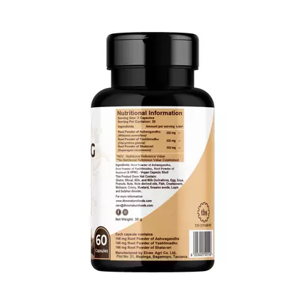 It’s mixed with Ashwagandha Root Powder, Yashtimadhu Root Powder, and Shatavari Root Powder.
