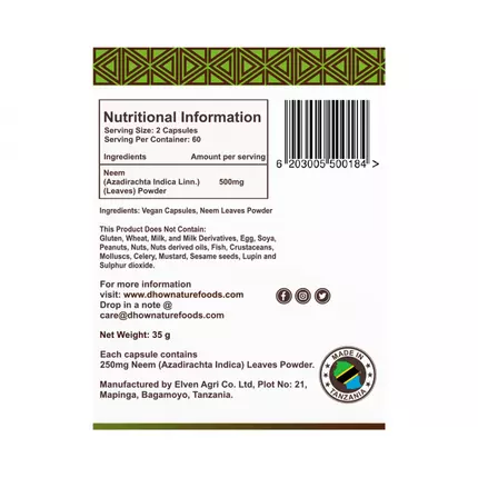 Experience the rejuvenating power of neem, inside and out. With every capsule, you're taking a step towards better health, radiant skin, and enhanced well-being. Trust in the age-old tradition of neem and allow nature's finest to nurture you from within.