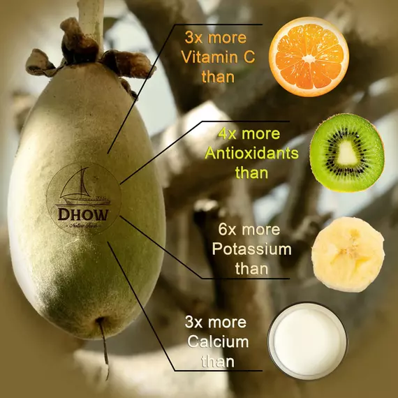 Nutrient-Rich Fruit: Baobab fruit is known for its exceptional nutritional profile. It is rich in vitamin C, antioxidants, dietary fiber, and essential minerals such as calcium and potassium. Organic cultivation helps preserve these natural nutrients.