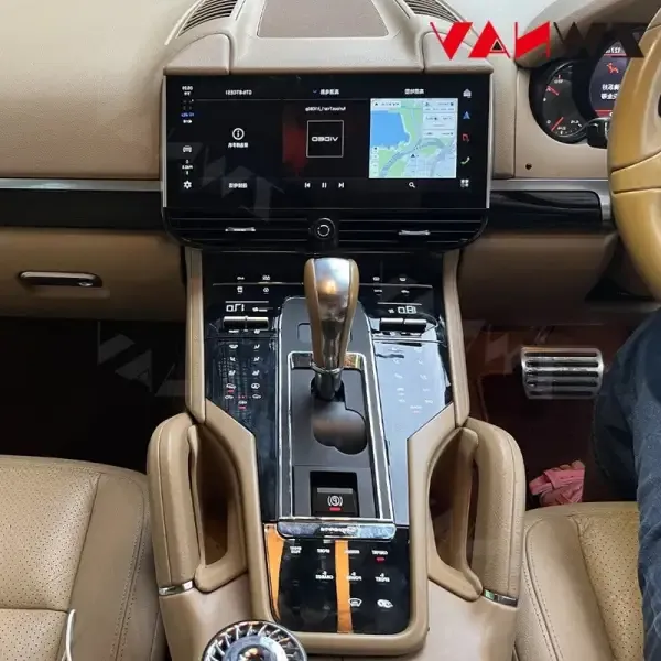 COMPATIBLE WITH PORSCHE CAYENNE 2010-2017 CAR DIGITAL LCD 24 FULL TOUCH CONSOLE FRONT AC PANEL FULL TOUCH 2024 STYLE TO 959 MULTIMEDIA PLAYER CONTROL BEIGE