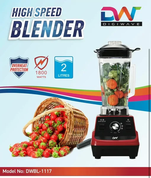 The Digiwave DW-BL1117 Commercial Blender is a powerful 1800W appliance designed for heavy-duty use. Featuring a durable 2L unbreakable jar and a pure copper motor, it delivers reliable performance with built-in safety features like overheat protection for demanding kitchen environments.