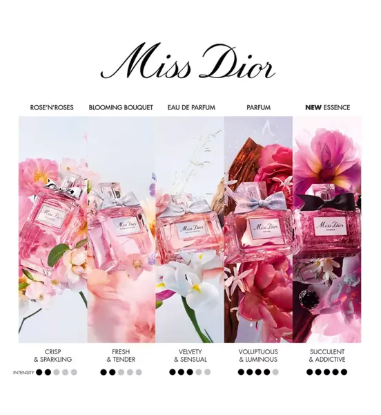 Miss Dior is a hymn to love, emblematic of Dior femininity with a Couture spirit. A hand-crafted trail of scent with a modern, rebellious and elegant personality.
