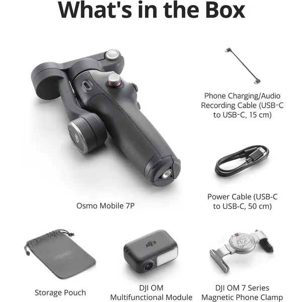 The Osmo Mobile 7P is built to last, offering up to 10 hours [3] of operating time. It supports your recording and creative pursuits all day long, and with its USB-C port, it can also charge your phone—ideal for extended outdoor filming and live streaming.