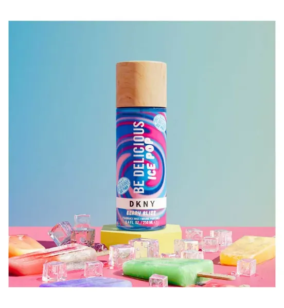 Fulfill your summer cravings with DKNY Be Delicious Ice Pop Berry Bliss fragrance mist - a lighter, refreshing take on the Eau de Parfum. Inspired by a juicy popsicle, this floral fruity fragrance opens with cool mint leaves and sweet mango for a crisp, mouth-watering burst. A playful mix of raspberry and cotton candy spun sugar adds sweetness, while strawberry freesia and waterlily brighten the heart. Perfect for summer, wear this mist alone or layer with the Eau de Parfum for added dimension.