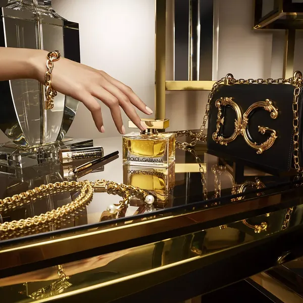 The flacon of Dolce&Gabbana The One Eau de Parfum, with its golden hue, pays homage to the tradition of perfumery.