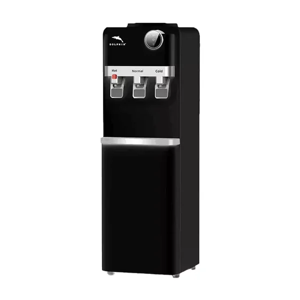 This Dolphin water dispenser provides hot, cold, and normal water options with a spacious integrated storage cabinet, making it an ideal and durable solution for home or office use.