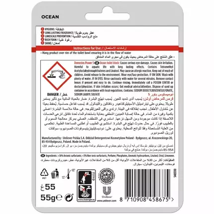 Use Domestos Ocean, Pink Magnolia, Chlorine and Lime Toilet Rim Block 1pc for a cleaner, fresher-smelling bathroom. Flush after flush, Power 5 Rim Block releases a rich foam, prevents limescale, removes dirt, leaves the toilet bowl shiny, and releases a fresh and long-lasting fragrance in your bathroom.