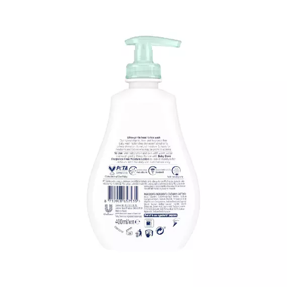 Mild and nourishing, Baby Dove Rich Moisture Head to Toe Wash is ideal for daily use. Simply wet baby’s hair and skin with warm water and wash gently with your hands or a wash cloth. Follow with Baby Dove Rich Moisture Lotion to help keep skin moisturised for up to 24 hours.