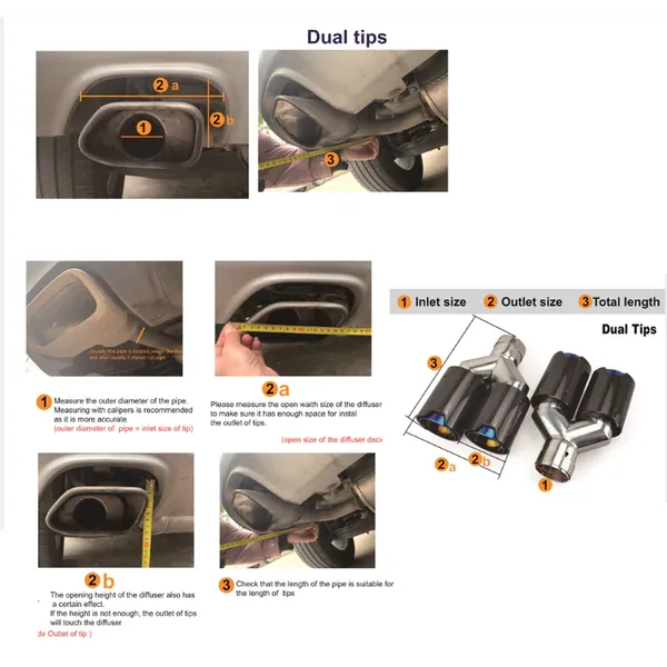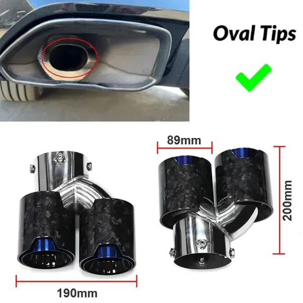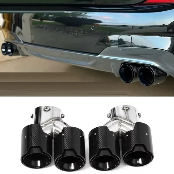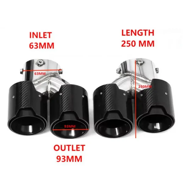 COMPATIBLE WITH BMW 1 2 3 4 5 6 7 Z4 X1 X2 X3 X4 X5 X6 X7 E60 E66 E70 E71 E90 E92 E84 E89 F02 F06 F07 F10 F12 F20 F25 F30 F34 F44 F60 F80 F90 G12 G01 G02 G08 G20 G28 G30 G38 G60 G80 G90 G05 G06 G07 G28 G29 DUAL M EXHAUST MUFFLER TIP EXHAUST SYSTEM NOZZLE TAILPIPE CARBON FIBER AND BLACK INLET 63MM OUTLET 93MM LENGTH 250MM