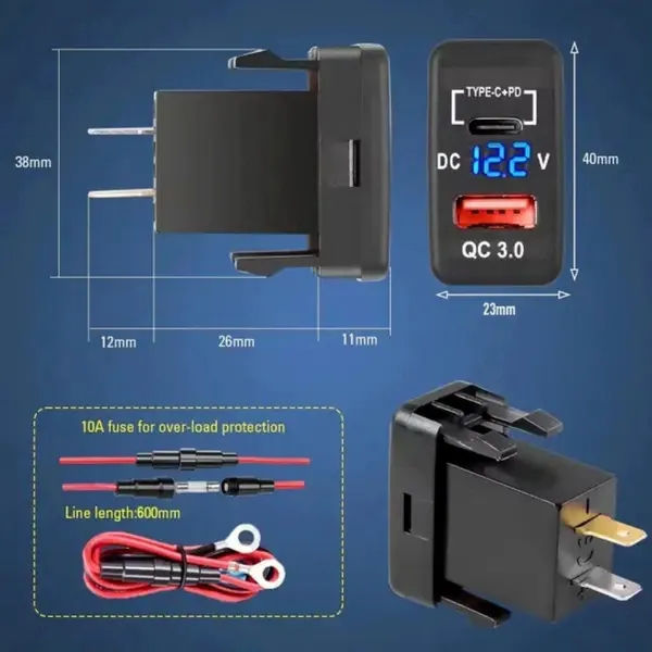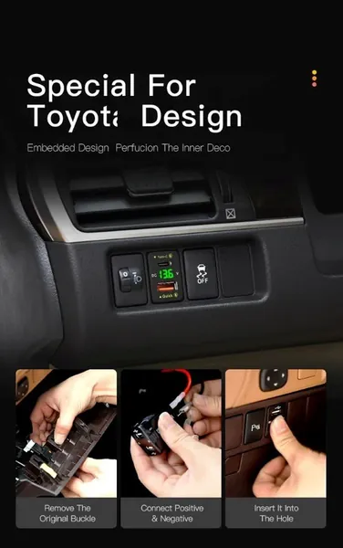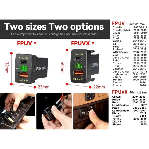 Compatible With Toyota Corolla Altis Innova Fortuner Hilux Land Cruiser Prado Camry Alphard Dual Usb Type C Power Car Charger Socket Fast Charge Adapter Outlet Switch 12v-24v Fpuvx 40*23mm