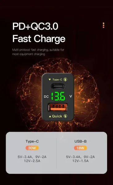 Dual Usb Type C Power Car Charger Socket Fast Charge Adapter Outlet Switch 12v-24v Fpuvx 40*23mm CC-6515 Compatible With Toyota Corolla Altis Innova Fortuner Hilux Land Cruiser Prado Camry Alphard