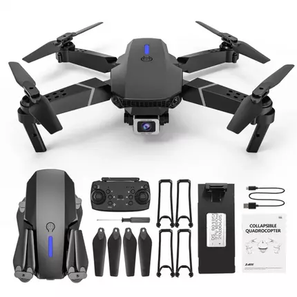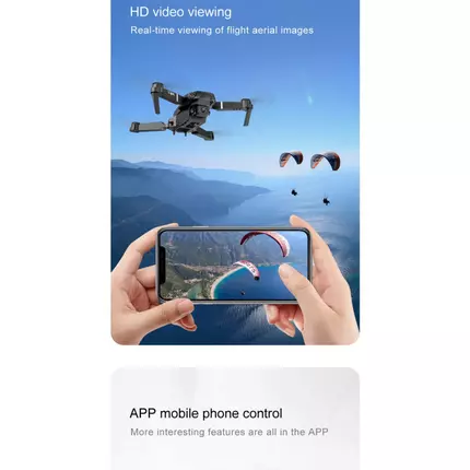 Features HD Pictures & Videos and FPV Function - The foldable Drone equipped with 4K HD Dual Camera, which captures high-quality video and clear aerial photos. You can watch a live video in your smart phone for beautiful scenery by Wi-Fi real-time transmission. 4K HD FPV WIFI Dual Camera - You can capture memorable moments with distortion-free and view images on your phone from the wide-angel lens. The app enables you to expand your creativity further and share it on social media with ease. Multiple Flight Modes - E88 Pro Drone is a versatile drone. It can perform stunts like 360° flip, circle fly, and high-speed rotation. Combined with trajectory flight which allows you to draw flying course on your phone, E88 Pro Drone brings you spectacular flying experiences. Convenient and Easy: With a Portable Carry Case, you could bring it outdoor conveniently. Headless Mode, Altitude Mode and One Key to Take-off / Land function make easier access to kids or beginners. Foldable Design & Double Flight Time - Foldable & flexible blades make the drone small and portable, modular batteries can support longer flight time for you and your family, which makes your flight more exciting and fun. Supports All Smart Phones. Camera description: Rear Compatible phone models: iPhone