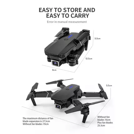 E99 Pro drone has a four-rotor fuselage made of high-strength and engineering-resistant ABS materials. With a 4-axis structure, the drone is even more flexible, speedy, and can fly indoors. It has a built-in 6-axis gyro stabilizer to ensure accurate positioning in flight. Three speed (low-speed/medium-speed/high-speed) is adjustable. Two cameras provide a wide range of 4K high-definition pictures and videos. You can also use wifi to connect with your mobile phone to control the drone, take pictures/videos, and transmit images in real time. Headless function makes the drone easy to directional control. With 2 Modular 3.7V 1800mAh Batteries, the drone can support up to 30 minutes flight time, which means Less charging but More flying! This mini drone also brings you many other features, such as altitude hold, 360° stunt flip, auto take-off/landing and one-key return. With foldable arms, it has a small size, and is easy to carry. The structure uses a modular design which makes it easy to install and repair. This drone is perfect for adults, kids, as well as beginners (Assistance from an experienced adult is recommended). Advanced Design and Materials: The BEEPRINCESS E99 Pro drone features a four-rotor fuselage crafted from high-strength, engineering-resistant ABS materials, ensuring durability and resilience. Its 4-axis structure enhances flexibility and speed, making it ideal for both indoor and outdoor flights. Superior Flight Stability and Control: Equipped with a built-in 6-axis gyro stabilizer, this drone guarantees accurate positioning and stable flight. It offers three adjustable speed settings—low, medium, and high—allowing users to tailor the flying experience to their skill level and preferences. High-Quality Camera and Connectivity: The drone comes with dual cameras capable of capturing stunning 4K high-definition photos and videos. Using WiFi connectivity, you can easily link the drone to your smartphone to control it, take photos or videos, and enjoy real-time image transmission. User-Friendly Features: The headless mode simplifies directional control, making it easier for beginners to fly the drone. Additional features include altitude hold, 360° stunt flips, auto take-off/landing, and one-key return, enhancing the overall user experience. Extended Flight Time: The package includes two modular 3.7V 1800mAh lithium batteries, providing up to 30 minutes of total flight time (15-18 minutes per battery). This allows for longer flying sessions with less downtime for recharging. INCLUDES: Drone * 1 Remote control * 1 Battery * 1 Spare maple leaf * 2 USB cable * 1 Screwdriver * 1 Manual * 1