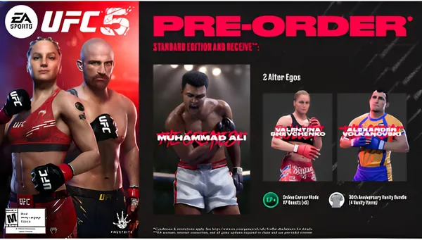 EA SPORTS™ UFC® 5 is as real as it gets. Powered by Frostbite™ engine’s advanced rendering capabilities, your favorite fighters now have unparalleled character likenesses to complement next-level environment fidelity that’ll make their walk to the Octagon feel like a PPV main event. The all-new Real Impact System brings the intensity and strategy of a fight to life, as cuts and strikes absorbed can affect mobility, defence, stamina, and more. Take too much damage, and the doctor could stop the fight. For lovers of the ground game, Seamless Submissions makes grappling feel more fluid and realistic than ever before. And if you like to admire your handiwork, new Cinematic K.O. Replays capture your fight-ending finishes in all their punishing glory. UFC 5 updates with fresh new Fight Week content, features, and challenges every single month around real-world UFC events. Plus, Alter Egos offer new versions of your favourite fighters to play with every month. Bring the next evolution of the fight game home with UFC 5.
