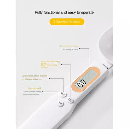 Whether you're a professional chef or an amateur cook, this kitchen scale will help you accurately measure ingredients. This spoon-shaped scale has a convenient LCD screen and three buttons to make it easy to use. It's one of the simplest ways to up your cooking and baking game.