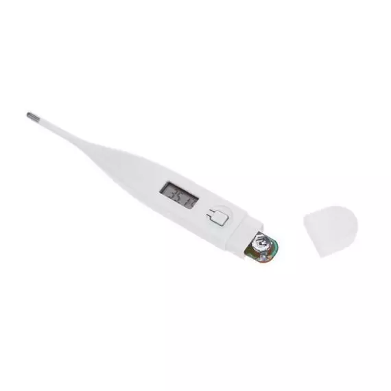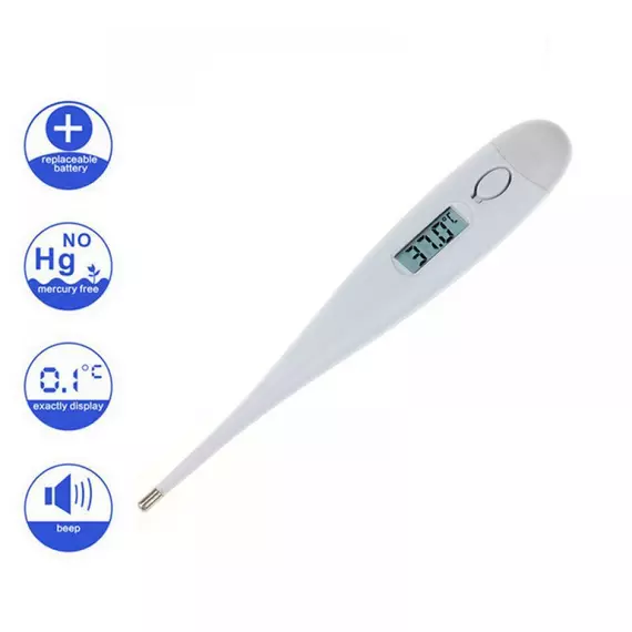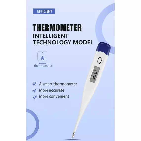 Feature: This product is specially designed for infants, and adults can also use it. It is safer, faster and more precise than the traditional mercury thermometers. It has a liquid crystal display, which is clear and intuitive. The quality is good and the performance is stable. Using Method: 1.Before using, we should first sterilize the thermometer sensor head with alcohol. 2.To press the power button, and the buzzer will beep and display the symbol. 3.Then the monitor can display the last measurement temperature and last for 2 minutes. Next the temperature display symbol flickers, indicating that it is in the state of being tested. 4.To put the thermometer sensing head into the measuring area, and the display temperature gradually increases. At the same time, the °C symbol will flicker, indicating that the measurement is carried out. If the temperature is always the same for 16 seconds in the measurement, then this sign will stop flashing, indicating that the temperature measurement is completed and the measured result has been memorized, so that the displayed temperature value can be read. 5.After the measurement is completed, if the power button is not pressed, the power will be turned off, and then automatically shut down after 8 minutes. Specification: Voltage: dc1.5v Battery Life: about 3 years (for using 10 minutes a day) The battery can be replaced to ensure long-term use. Measuring Range: 32.0-42.0°c Measuring Accuracy: ±0.1°c