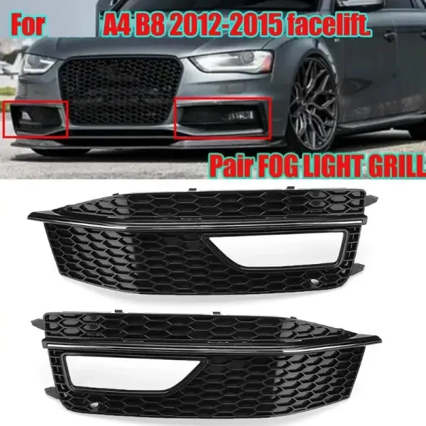 Compatible With Audi A4 2013-2016 B8 Electroplate Bumper Fog Lamp Grill Frame Cover
