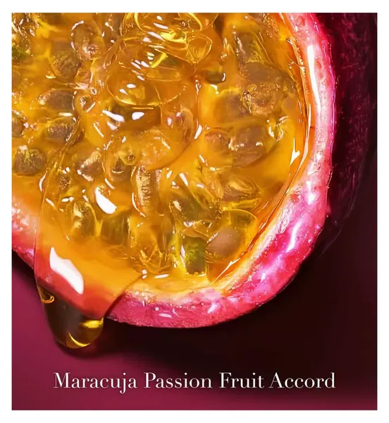 The fragrance opens with a captivating passion fruit accord, evoking the fruit's purest essence.